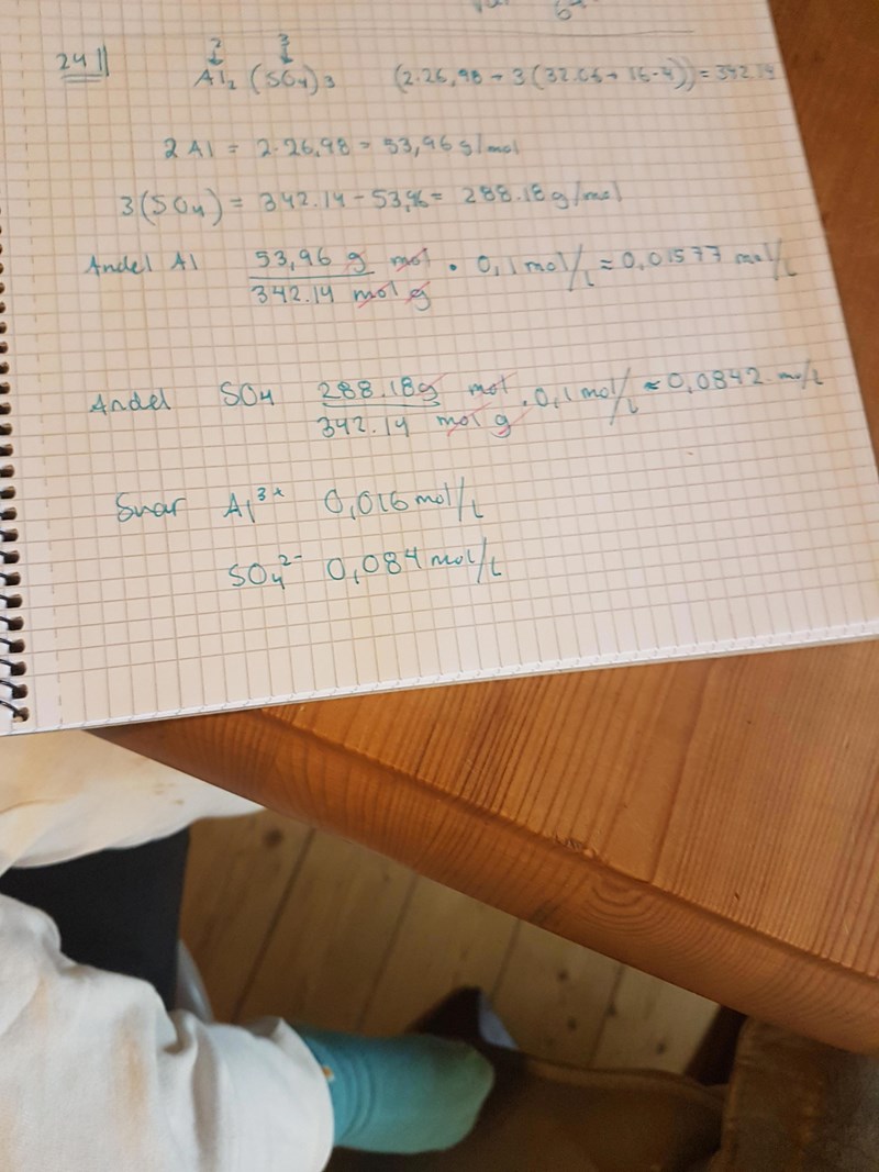 Uppgift: En lösning är 0,1 mol/l med avseende på aluminiumsulfat, Al2(SO4)3.