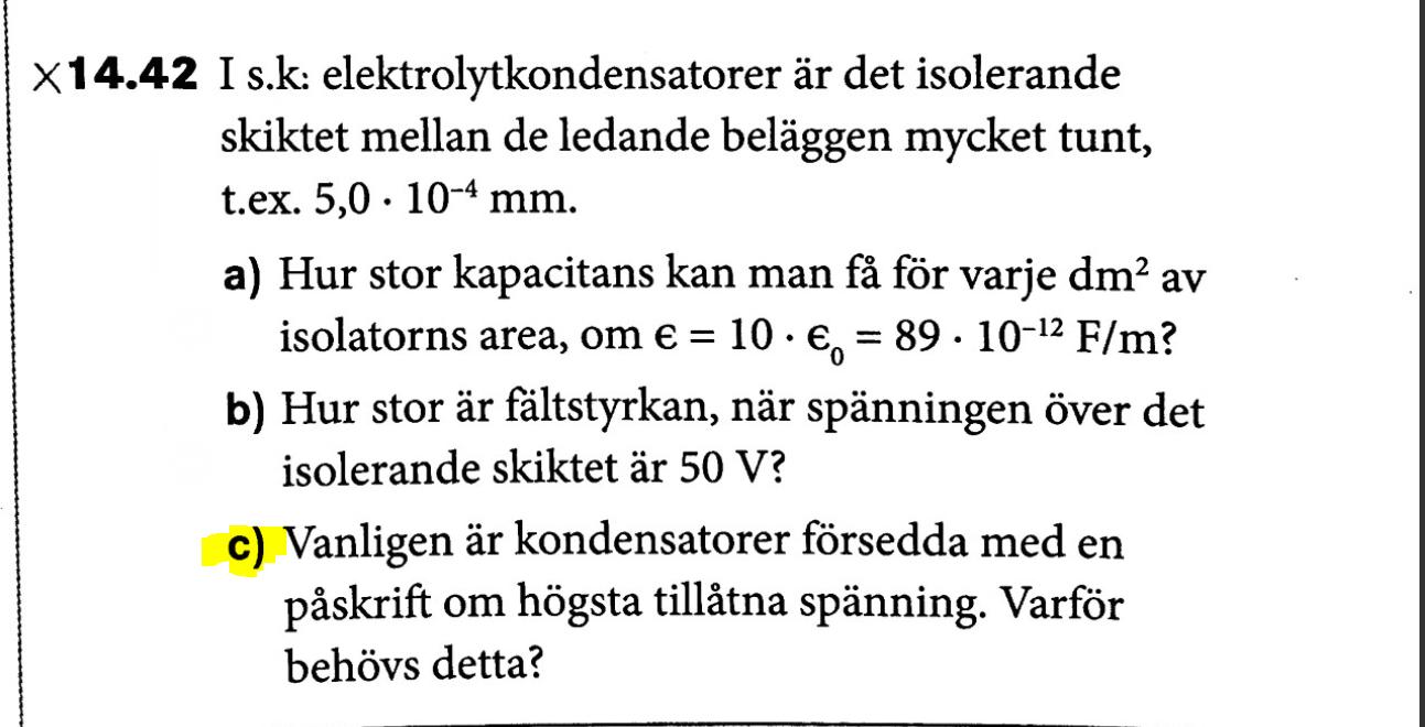 Idealt är en kondensator två metaller separerade av en isolator. För en plattkondensator kan detta vara luft eller en olja och för en elektrolytkondensator så är det ett tunnt oxidlager som på ena metallytan vilket beskrivs osom 'skiktet i uppgiften'.