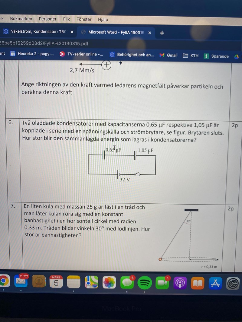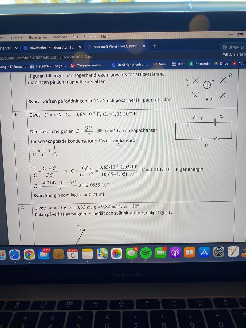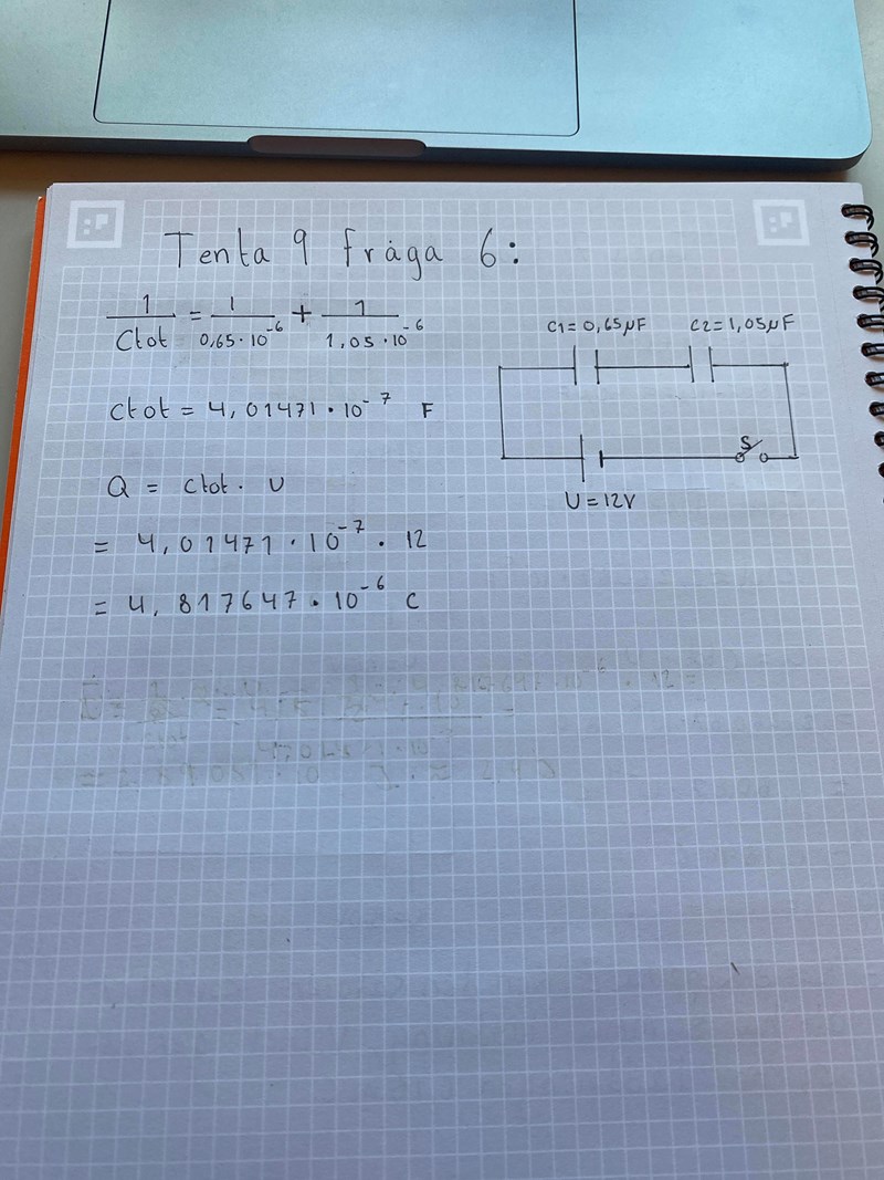 Jag förstår inte riktigt vart 32^2 kom ifrån du U=12 V. Sen undrar jag om mitt Q är rätt med tanke på att det är något som är fel när jag ska räkna ut energin med formeln E =1/2 * Q*U? Fråga 6