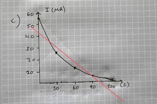 Ytan under kurvan är ungefär lika stor som triangelytan, som är Q = 43•100/2 μAs = 2,1 mAs.