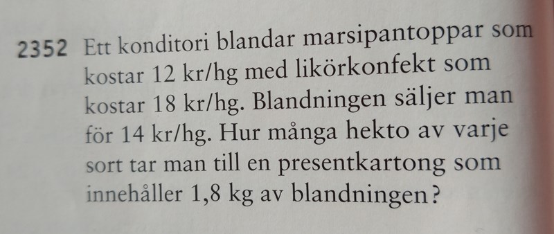 Stokastisk skrev :Du har att är hur mycket marsipantopparna kostar totalt, sedan är hur mycket likörkonfekten kostar totalt.