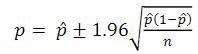 Jag håller på med att Beräkna ett 95% konfidensintervall för andelen ^p med hjälp av den här ekvationen