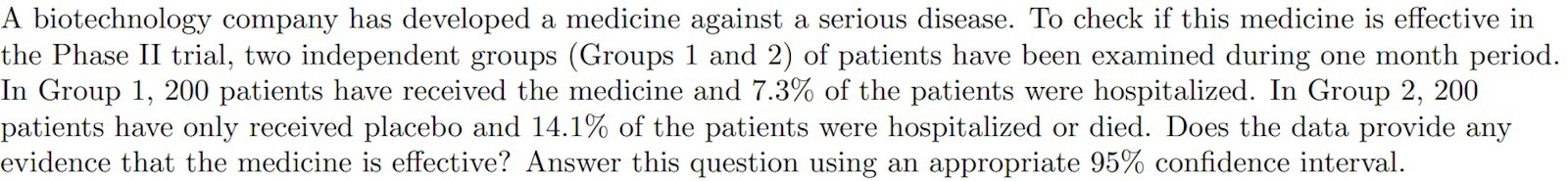 är en lämplig formel att utgå ifrån. Allt är givet i formeln. Men jag vet inte hur man ska tänka när man väljer vilket intervall man ska kolla på. Jag antar att, eftersom jag ska kolla om det är effektivt eller inte, ska jag välja som intervall. Om det är effektivt ska a vara större än noll, stämmer det? Alltså att jag ska räkna ut en nedre gräns.