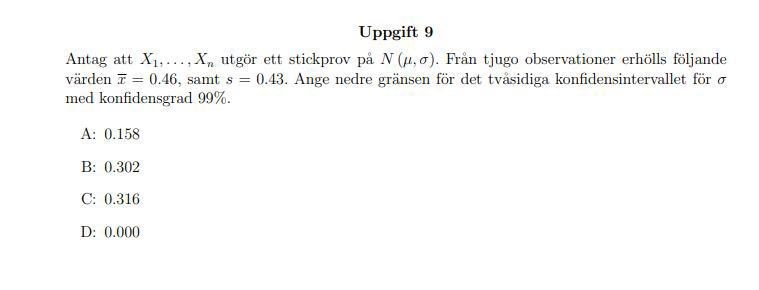 Konfidensintervall i Sannolikhetsteori och statistik (sannstat), Tenta snart