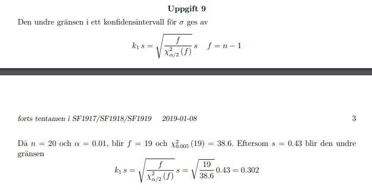 Hej, har tenta här snart och undrar lite hur man ska se från en uppgift att man ska ta fram ett intervall med antingen hjälp med stickprovsmetoden och konfidens intervall, där man tar .