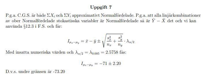 Hej undrar angående denna uppgift varför de tar fram ett lambda värde från tabell 2 istället för ett t värde från tabell 3. För man använder ju lambda när sigma är känd men såvitt jag förstår de är sigma ej känd i denna uppgift?