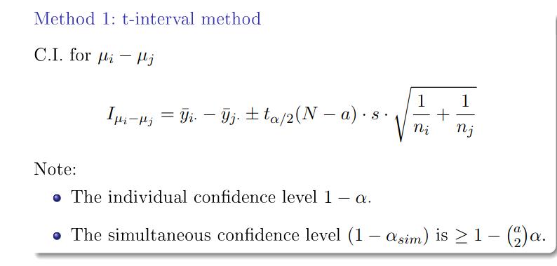 Har inte helt pejl på simultant/individuell konfidensnivå men väljer största möjliga (dvs) = 0.06 vilket ger och
