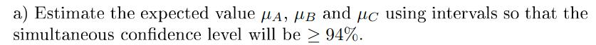 Jag ska uppskatta de förväntade värdena , , genom att använda intervall så att den simultana konfindensintervallnivån