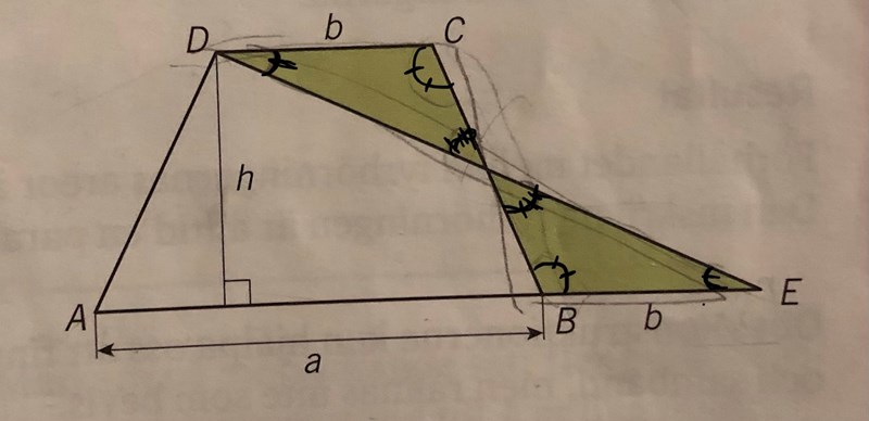 Jag är rätt säker på att vinkeln vid punkt C och vinkeln vid punkt b är alternatvinklar, det gäller oxksp vinkeln vid punkt D och E. Vinklarna mot mitten av de två färgade triangeldrama är vertikalvinklar