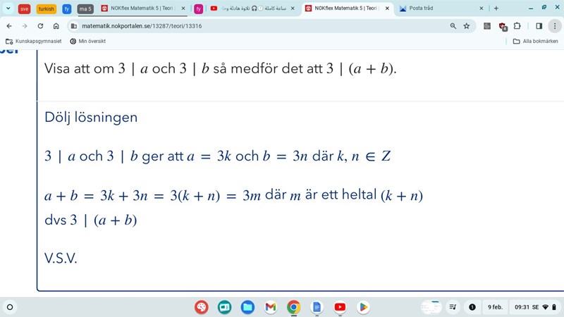 I delbarhets delkapitket fick vi skriva att om n är delbar med 3 så kan vi anta att a=3k och b=3n t.ex där k och n är ett heltal men här har vi a-b är delbara med, borde inte då vi ta 3k-3n