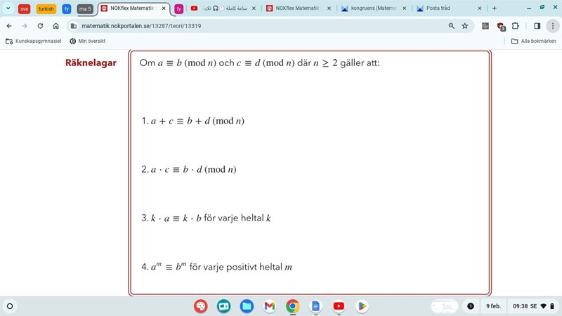 Kan du uttrycka det med ord? Hur vet du om t ex 5 och 8 är kongruenta modulo 4?