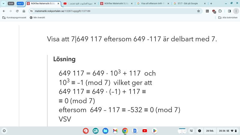Få se... 532/7 = 76 rest 0, -532/7 = -76 rest 0, jo, de är kongruenta modulo 7. Men vitsen är att båda är kongruenta med 0 modulo 7.