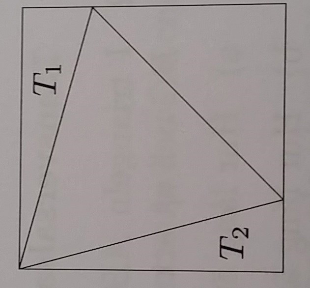 Uppgift: En liksidig triangel är inskriven i en kvadrat med sidan 1 dm på så sätt att ett hörn av triangeln och ett hörn av kvadraten sammanfaller. (Se figuren)