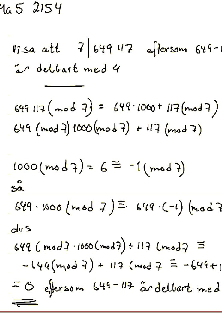 EDIT: Inser nu att det som står nedanför bilden är fel. Jag menar att 10^3 är kongruent med 3^3 (mod7), inte 7^3.