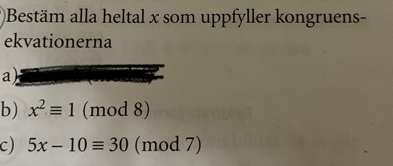 Behöver hjälp med b. Jag har kommit fram till att x^2-1=8k. Vet inte hur jag ska fortsätta.