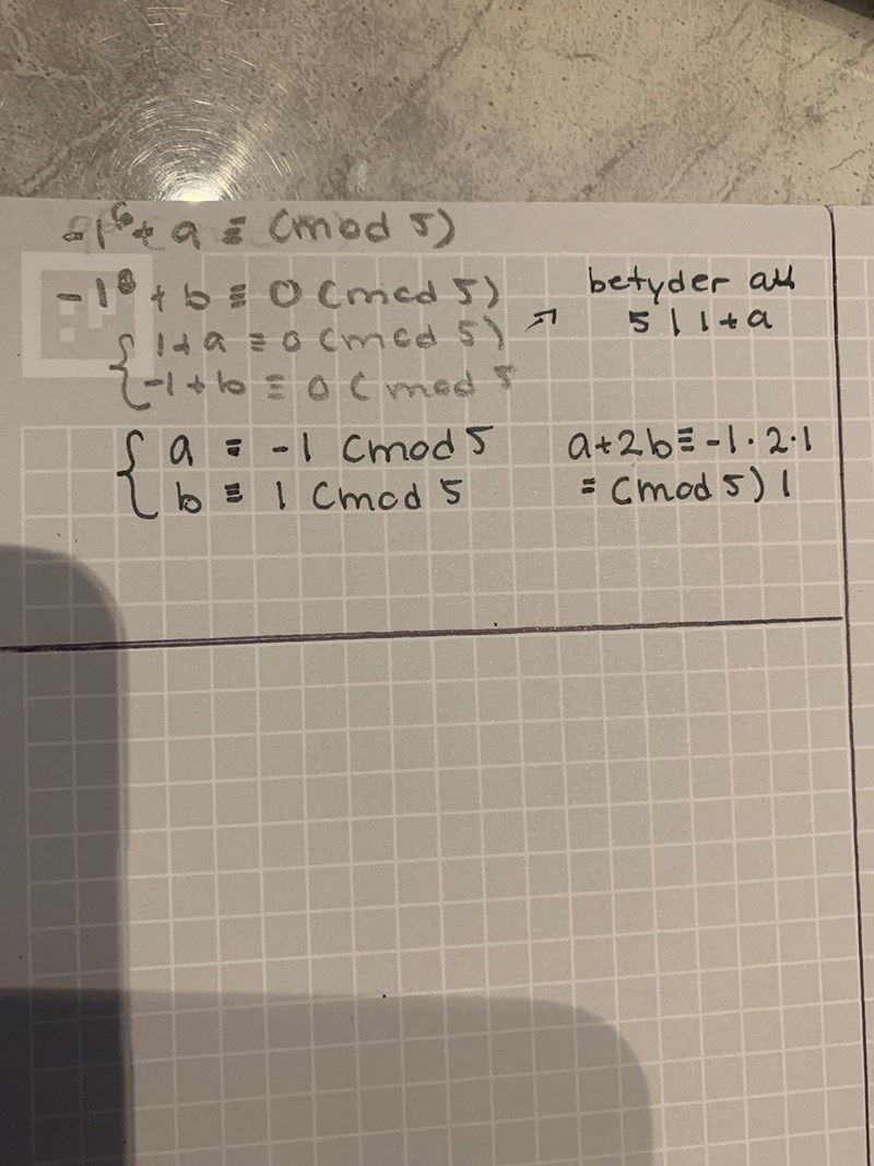 ska det väl ändå stå (samt vara ett kongruent lika med-tecken innan (mod 5)?)? :)