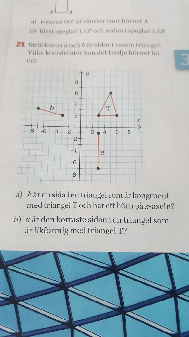 Hur lång är sträckan a? Hur många längdenheter (rutor)?