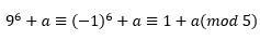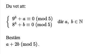 Vi får lägga på multiplar av fem, eftersom vi räknar modulo 5. Det ger oss alltså att a5(-1)+5n (för heltal n). Vi kan då bryta ut en femma, så att vi får a5(-1)+5+5(n-1)=4+5(n-1).