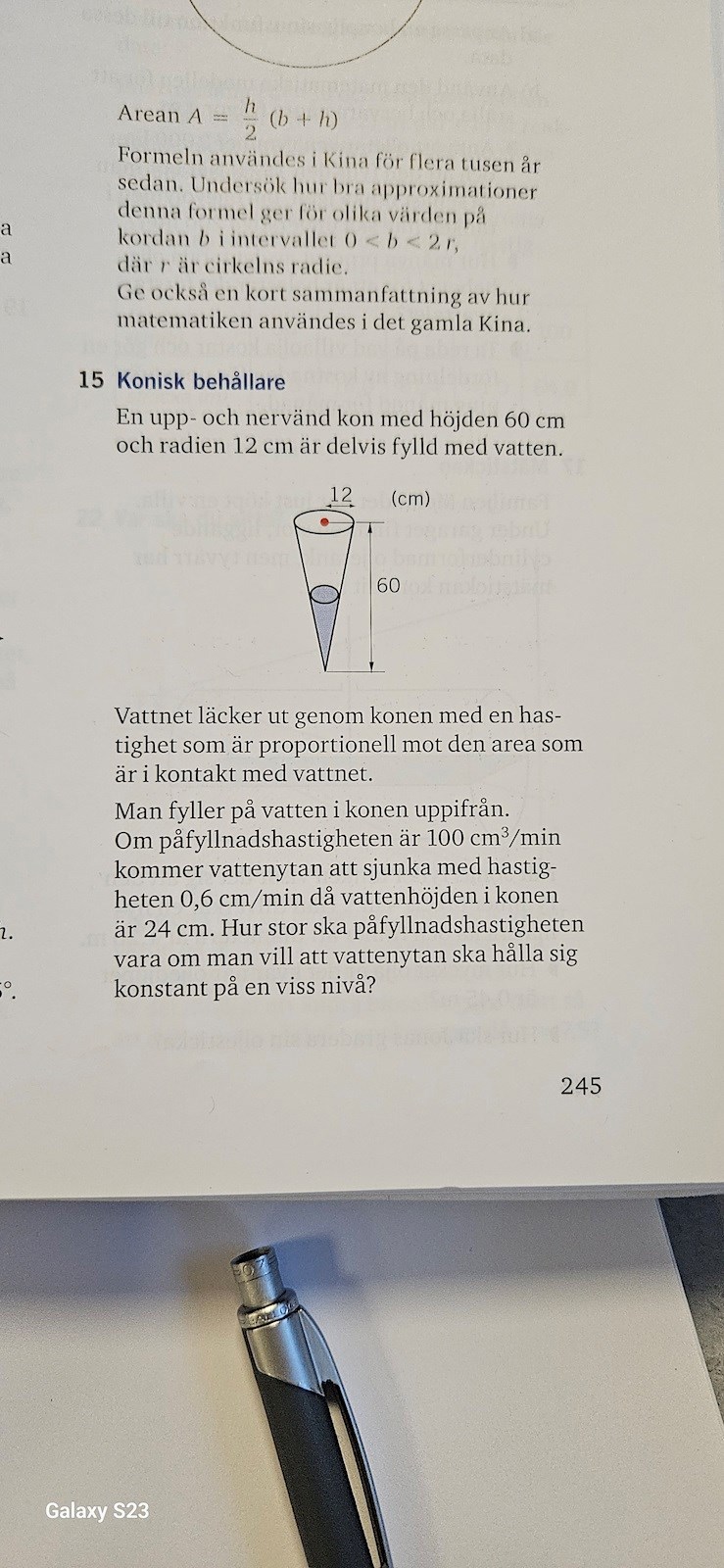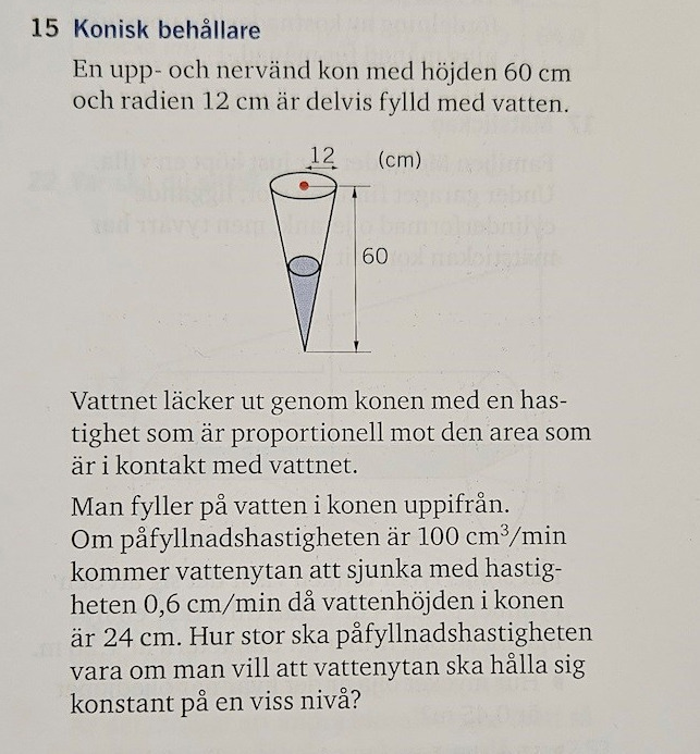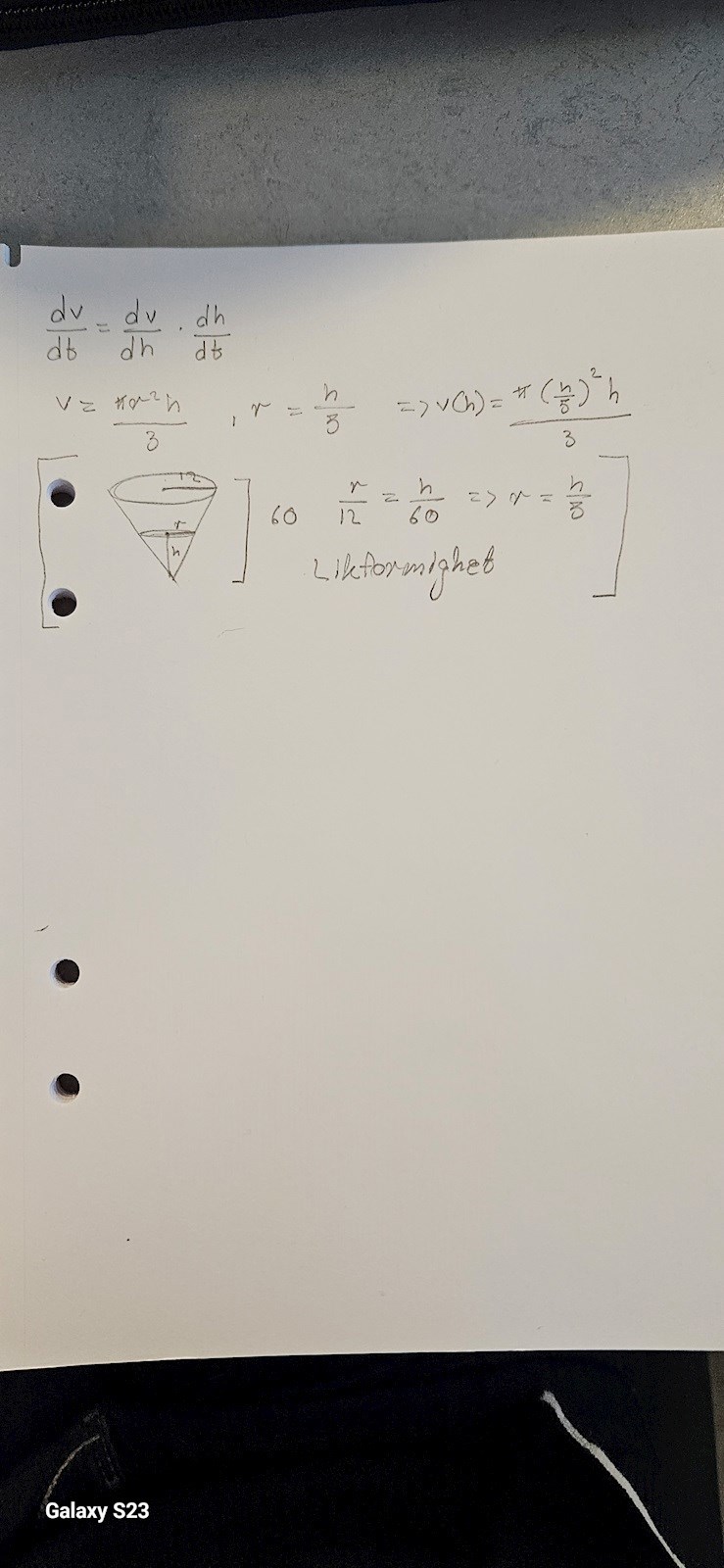 Jag tänkte fel om diffekvation, du verkar vara på rött spår. Kan du hitta ett uttryck för dv/dh?