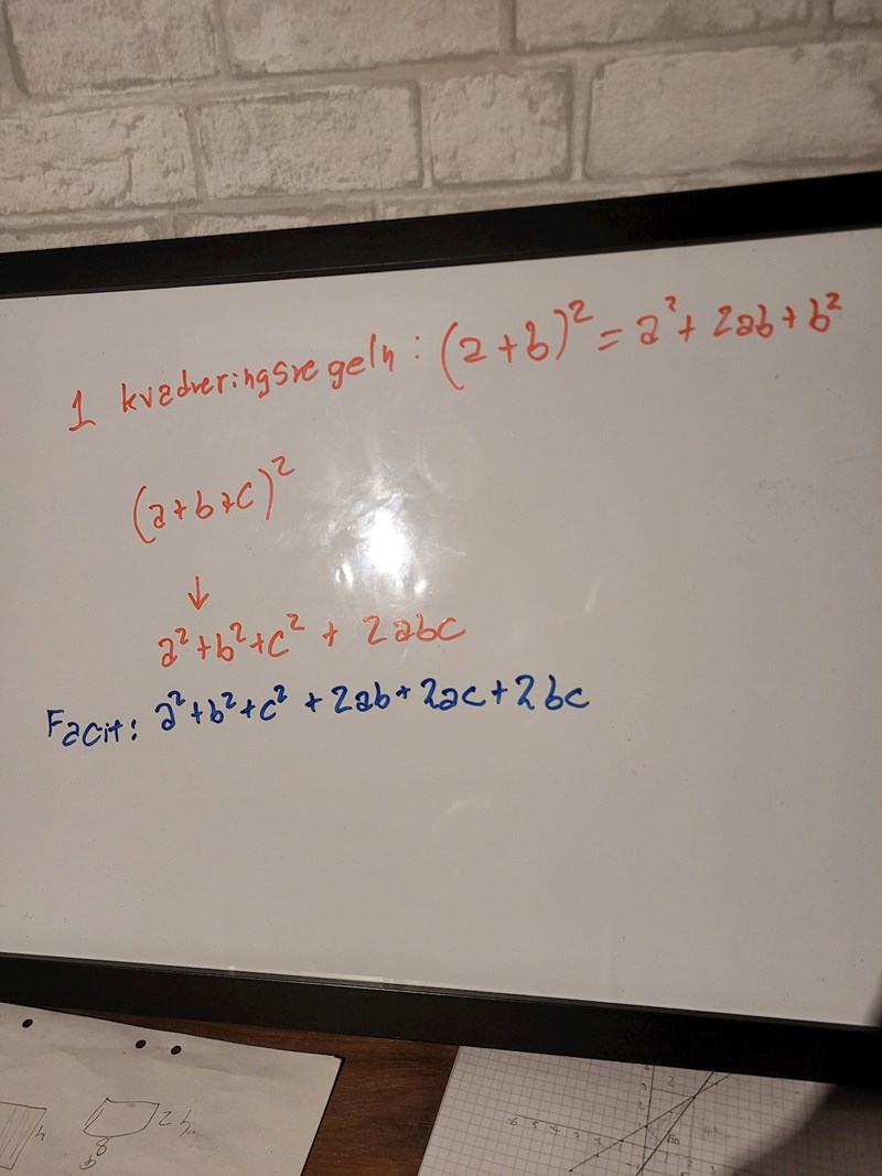 Testa en gång att utföra kvadreringsregeln för (a+b)^2 utan att använda regeln, hur gör du då?