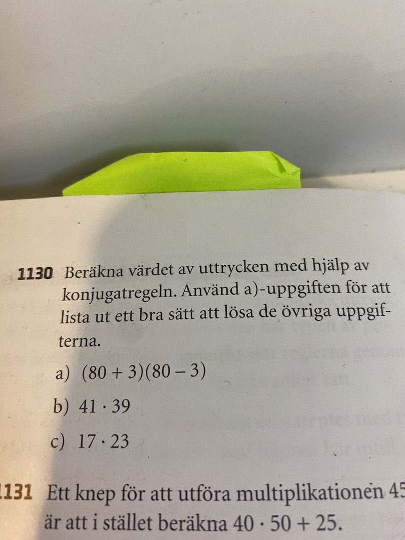 Vill du applicera samma princip kan du då skriva om b) som följande: (40+1)(40-1), det ekvivalent till det som står i frågan.