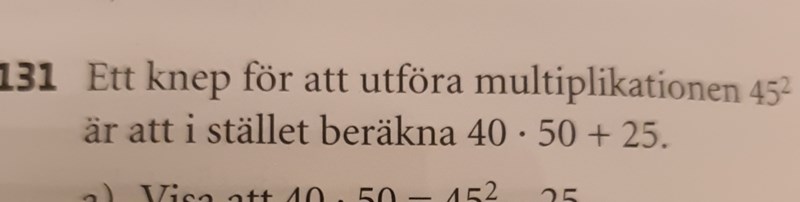 Hej, genom vilka beräkningar har man kommit fram till följande? Hur har man kommit fram till att 45^2 = 40 x 50 + 25.
