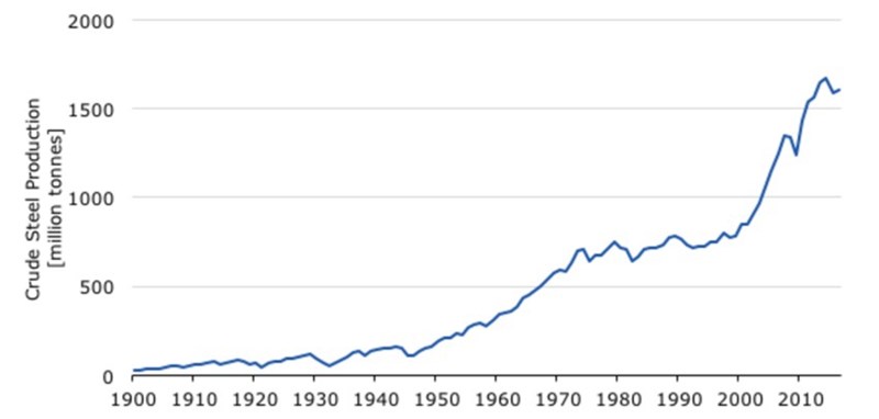Upptäckten av syre och hur man kan renframställa det har haft betydelse eftersom man har kunnat öka produktiviteten i stålindustrin. Grafen nedan visar världsproduktionen av stål i världen det senaste århundradet. Syrgasprocessen där man använder syrgas istället för luft för att raffinera råjärnet till stål uppfanns 1948, precis när världsproduktionen tar ordentlig fart. Anledningen till den snabba ökningen är en kombination av att produktiviteten i stålindustrin då ökade, samt att Europa var sönderbombat efter andra världskriget och behövde byggas upp från grunden igen (i Sverige kallas denna tid för rekordåren, då vi var ett av få länder i Europa som inte hade sönderbombade fabriker och kunde producera varor till återuppbyggnaden).