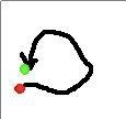 där röda punkten motsvarar startpunkten, a, och den gröna motsvarar punkten b?