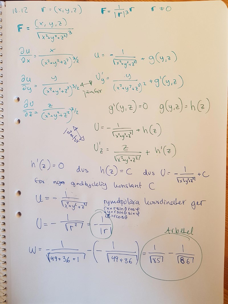 Det har låst sig i huvudet. Jag försöker göra samtliga uppg i detta kapitel för att fatta, men fastnar helt på denna och nästa. Jag tänker själv att om jag finner en funktion U där gradU=F är fältet konservativt och arbetet är U(x1,y1,z1)-U(x0,y0,z0).