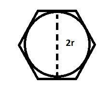 Gör en liksidig triangel med sidorna cirkelns radie, en halv kortsida och avståndet från centrum till hörnet. Den arean är hyfsat lätt att räkna ut - du vet ju alla tre vinklarna, bara du tänker efter lite. Sedan är hela hexagonen 12 ggr så stor.