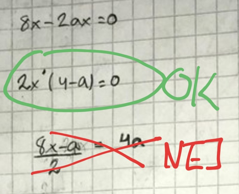 Enligt nollproduktmetoden är då antingen 2x = 0 eller 4-a = 0.