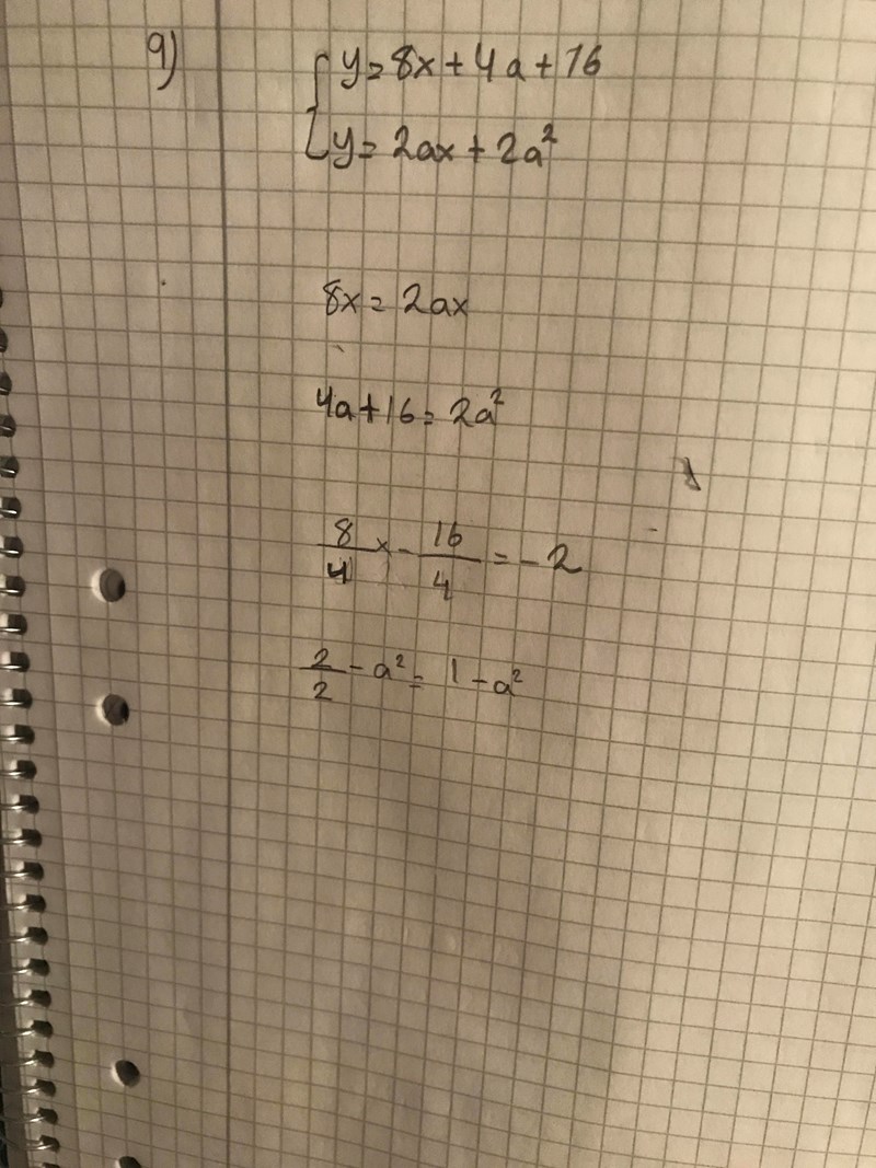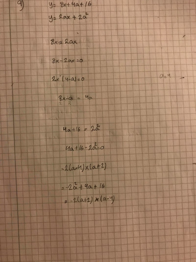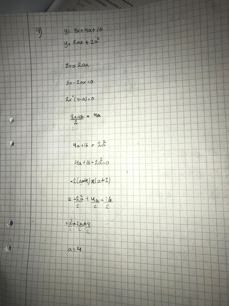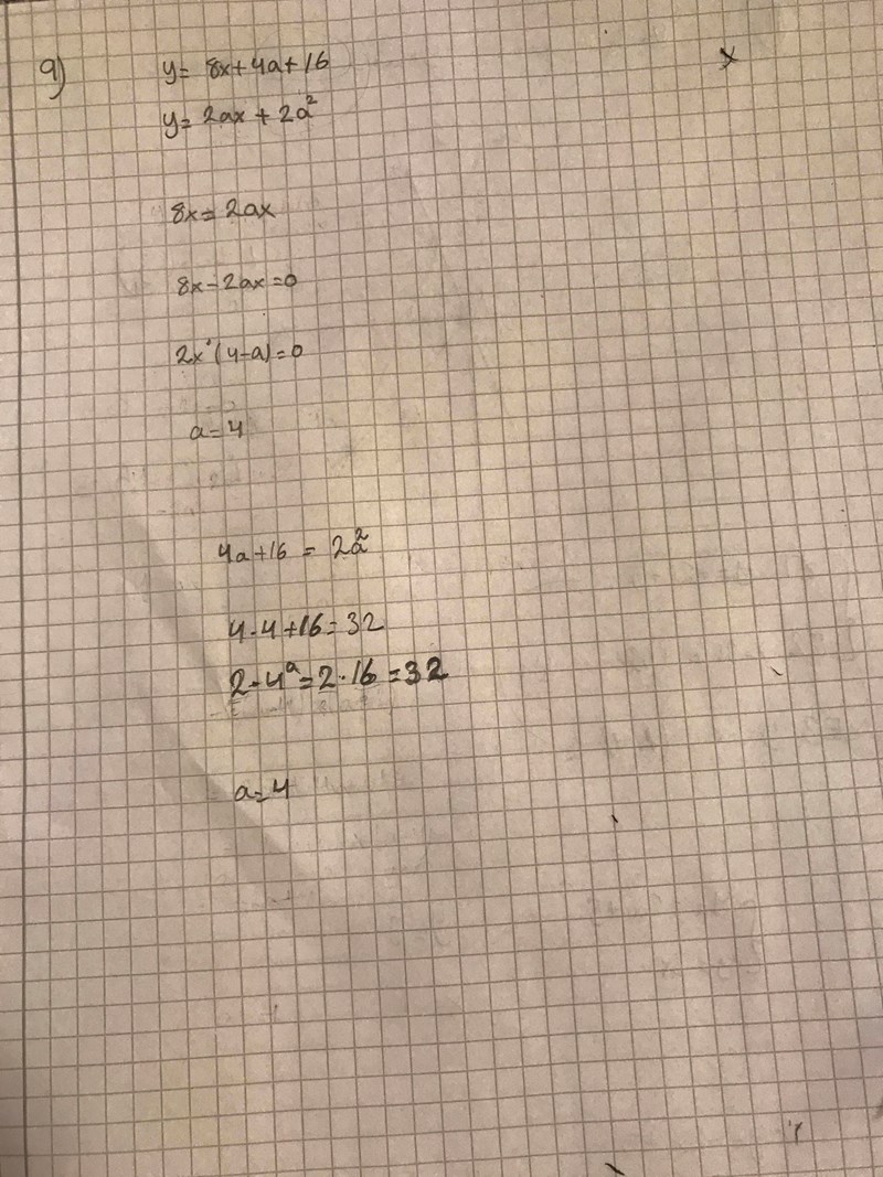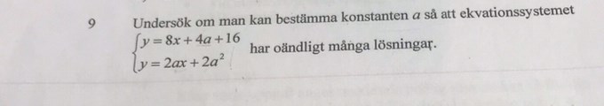 Alltså måste 8x=2ax och 4a+16=2a2 Förstår du varför?