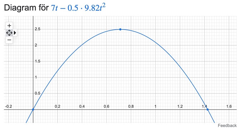 Jag vet nu, att efter 1,5 sekunder är bollen på sin högsta punkt, vändpunkten. Om jag har förstått rätt, är det så i flesta fall med konstant acceleration. Halvvägs genom tiden har föremålet nått sin högsta punkt. Fast varför är det så? Jag har hört om att det är konstant tyngdacceleration, och om rörelsesymmetri, men det blir svårt att lära sig själv då jag självfallet inte har tillgång till lärare just nu.