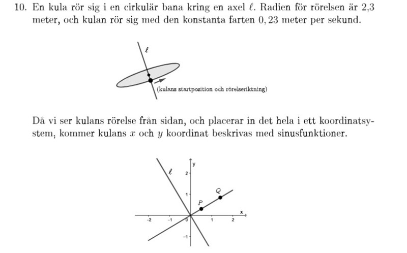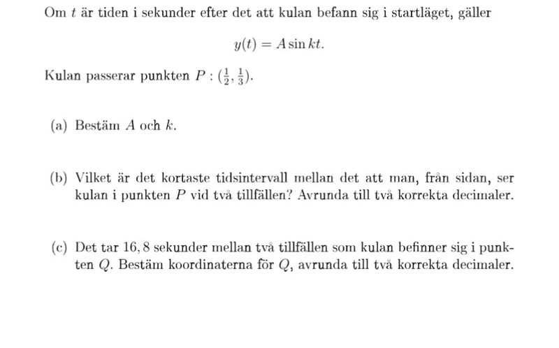 När k*t går från 0 till 2pi har vi gått ett fullt varv som tar 20(pi) s