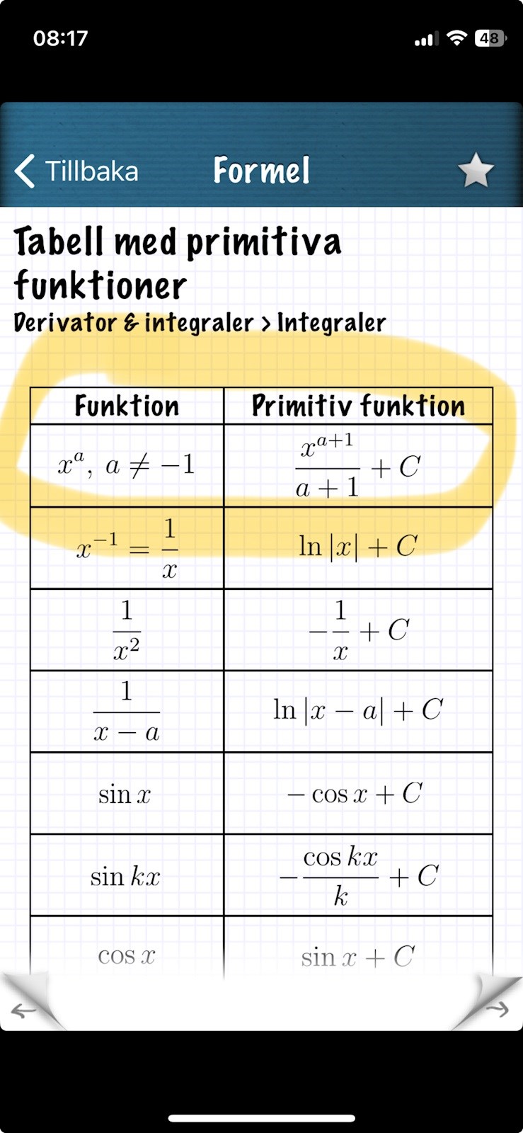 förstår inte hur jag ska ta fram den primitiva funktionen (x^0)/0 känns fel. Vet inte heller hur jag ska gå vidare när jag väl räknat ut vad integralen av f(x) är. Förstår liksom inte hur jag ska koppla det till f(a)