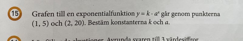 Konstanter till exponentialfunktion med hjälp av punkter