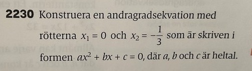 nej, har faktiskt inte stött på vietas formler i boken, kan ha missat det någon stans, men det verkar användbart så det ska jag lägga på minnet. Tack för hjälpen :)