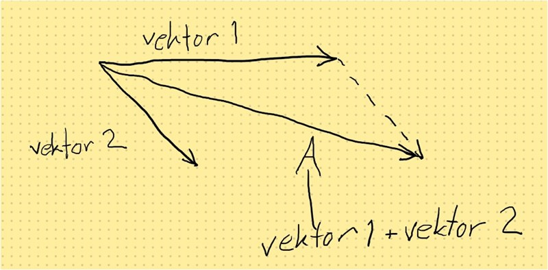 Vektoraddition kan du göra grafiskt genom att 'flytta' ena vektorn till där den andra slutar.