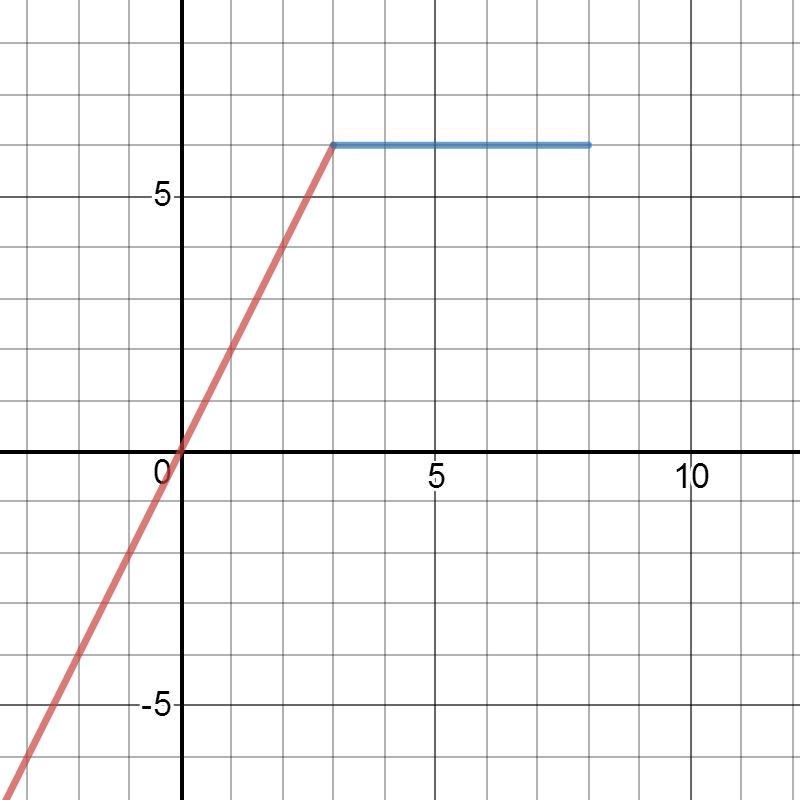 - f(x) = 2x, då x <= 3 (dvs då x är mindre än eller lika med 3)