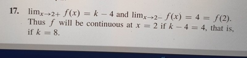 Jag hängde inte med vad de gjorde i facit. Men jag förstod att för att funktionen ska vara kontinuerligt även för x>2 då måste den andra grafen alltså k- x^2 skära x^2 I punkten (2,4). Därför måste k vara 8. Tacksam om någon berättar hur man löser det med hjälp av gränsvärde.....