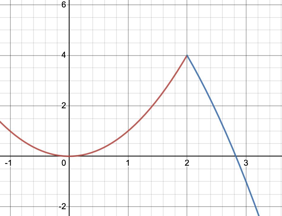 Den här uppgiften liknar uppgiften som jag bad om hjälp i mitt föregående tråd. Om jag har förstått rätt så funktionen f(x) ser ut som x^2 för alla x <= 2 och för alla x>2 kommer f(x) se ut som k-x^2 . Man förstår även att x=2 är som ändpukt för f(x) och där är funktionen är vänster kontinuerligt. Men man vill att från punkten x=2 ska den andra delen av f(x) alltså k- x^2 försätta så att funktionen blir kontinuerligt. Kunde inte komma på lösning så tittade jag på facit😅.