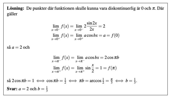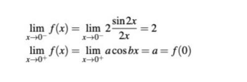 För att vi ska ha kontinuitet så måste alltså a = 2 för att acosbx måste börja där sin2x/x slutar, annars har vi ett hål.