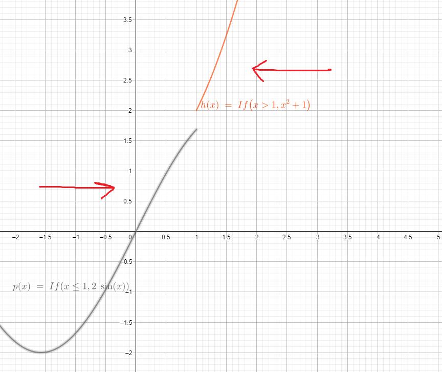 Tänk dig att du ska närma dig 1 från vänster för 2sinx och från höger 1+x^2. Om gränsvärdena ej är lika, då är de ej kontinuerliga
