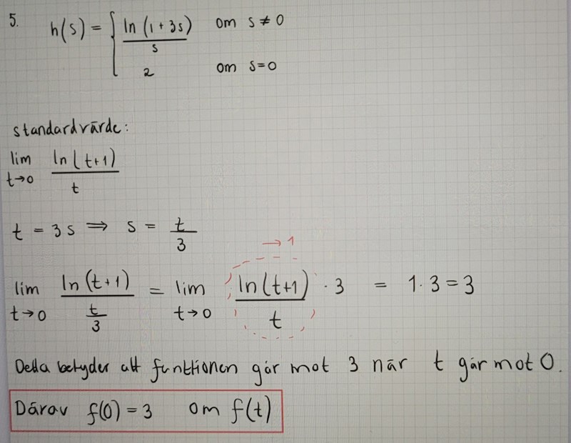 Du menar så här? Man vill ju närma s=0 men inte komma till exakt s=0 så man tar gränsvärdet på detta sättet och då ser vi att vi närmar oss 3