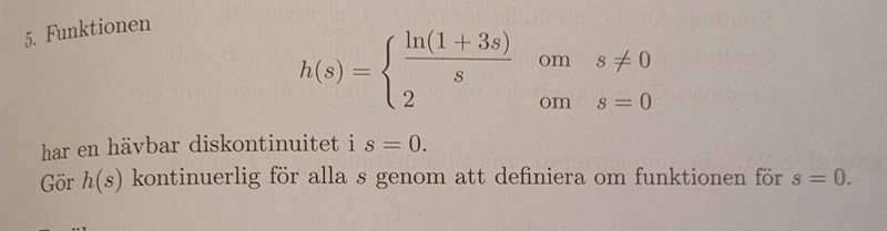 Jag behöver lite hjälp att starta. Jag vet att villkoren säger att detta är inte kontinuerligt vid brytpunkten s=0, men sen blir jag lite osäker vad jag ska sen.