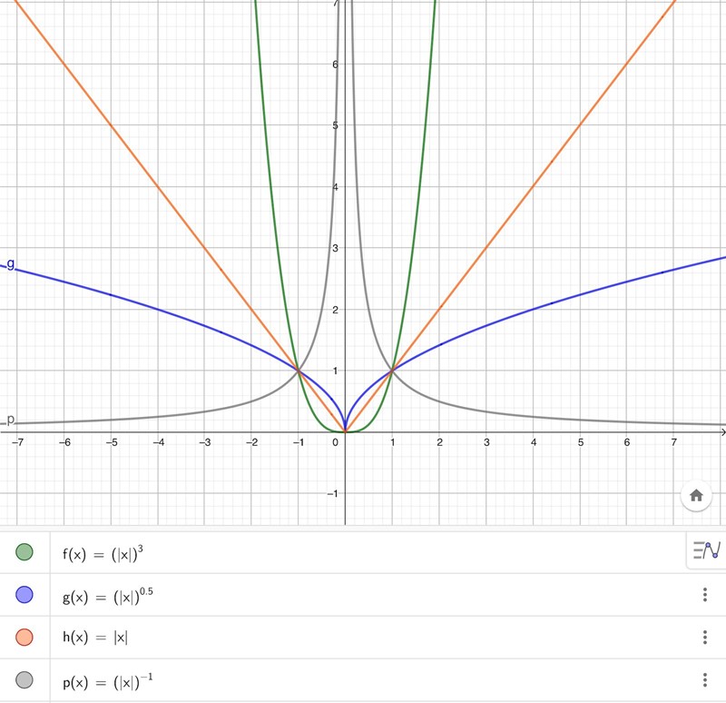 hej, jag undrar på hur jag kan från grafen avgöra för vilka värden på a är funktionen f(x)=abs(x)^a