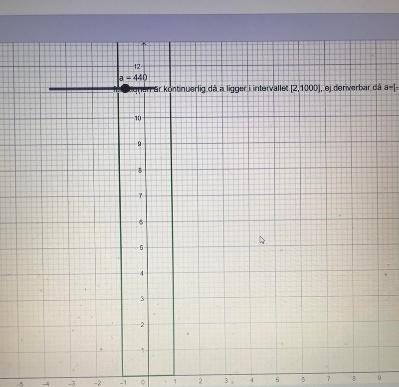 funktionen är ej deriverbar i intervallet då x =[-1,1], men är kontinuerlig då a är negativ