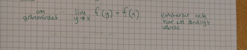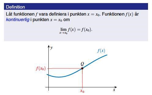 Vad menas med att en funktion f är kontinuerlig i x?