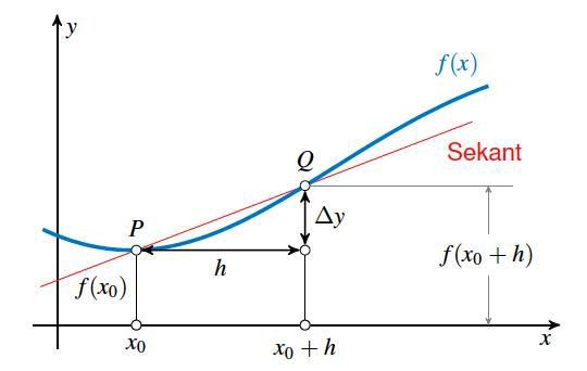 Sekantens riktningskoefficient , , ges av