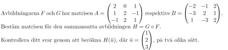 Hej! Jag har räknat ut matrisen för den sammansatta avbildningen men vet inte hur jag ska kontrollera mitt svar på två olika sätt. Hur kan man göra det? Jag har också räknat ut H(û). Vad borde jag göra efter?